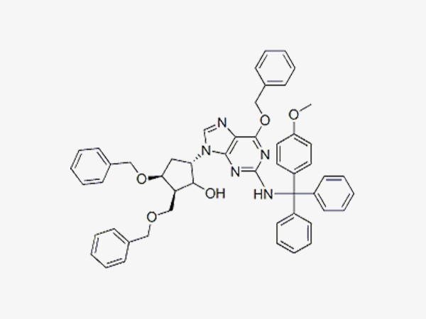 | 英文別名: | (2R,3S,5S)-3-(Benzyloxy)-5-[2-[[(4-methoxyphenyl)diphenylmethyl]amino]-6-(phenylmethoxy)-9H-purin-9-yl]-2-a(benzyloxymethyl)cyclopentanol; (2R,3S,5S)-3-(Benzyloxy)-5-(6-benzyloxy)-2-(4-methyoxyphenyl)diphenylmethylamino)-9H-purin-9-yl)-2-benzyloxymethyl)cyclopentanol; Entecavir intermediate N5; (1S,2S,3S,5S)-3-(benzyloxy)-5-(6-(benzyloxy)-2-((4-methoxyphenyl)diphenylmethylamino)-9H-purin-9-yl)-2-((4-methylbenzyloxy)methyl)cyclopentanol; Entecavir intermediate 5; Intermediate of Entecavir 3; (1S,2S,3S,5S)-3-(benzyloxy-5-(6-(benzyloxy)-2-(diphenyl(p-tolylamino)methylamino)-1H-purin-9(6H)-yl-2-(benzyloxymethyl)cyclopentanol; (2R,3S,5S)-3-(Benzyloxy)-5-[2-[[(4-methoxyphenyl)diphenylmethyl]amino]-6-(phenylmethoxy)-9H-purin-9-yl]-2-(benzyloxymethyl)cyclopentanol (E5) |